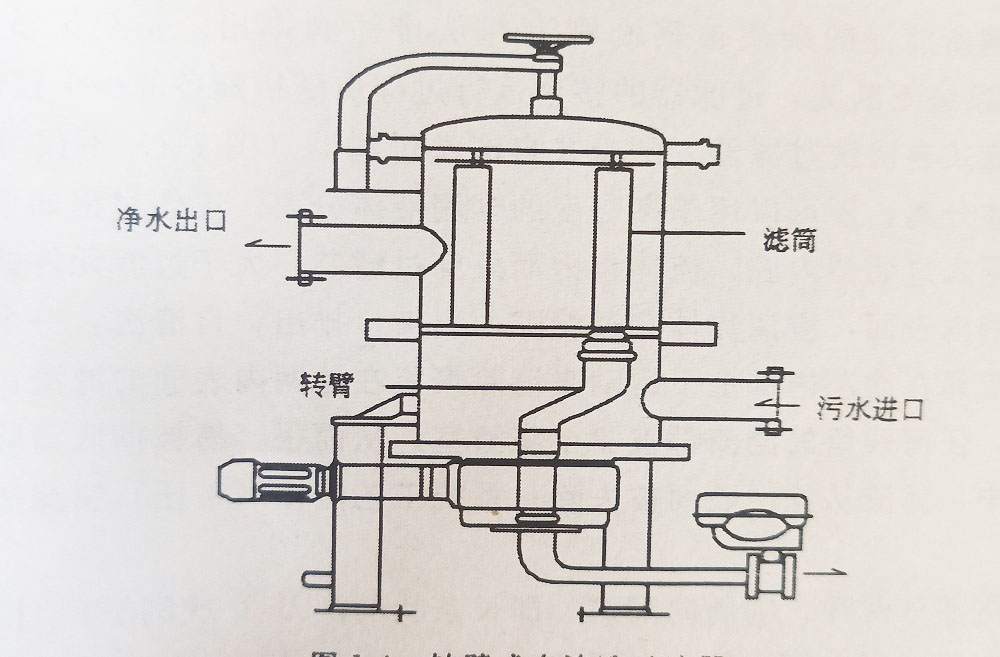 轉(zhuǎn)臂式自清洗濾水器是一種集約化的濾水器,多個(gè)濾筒安裝于一個(gè)濾水器筒體內(nèi),結(jié)構(gòu)緊湊,如下圖所示。